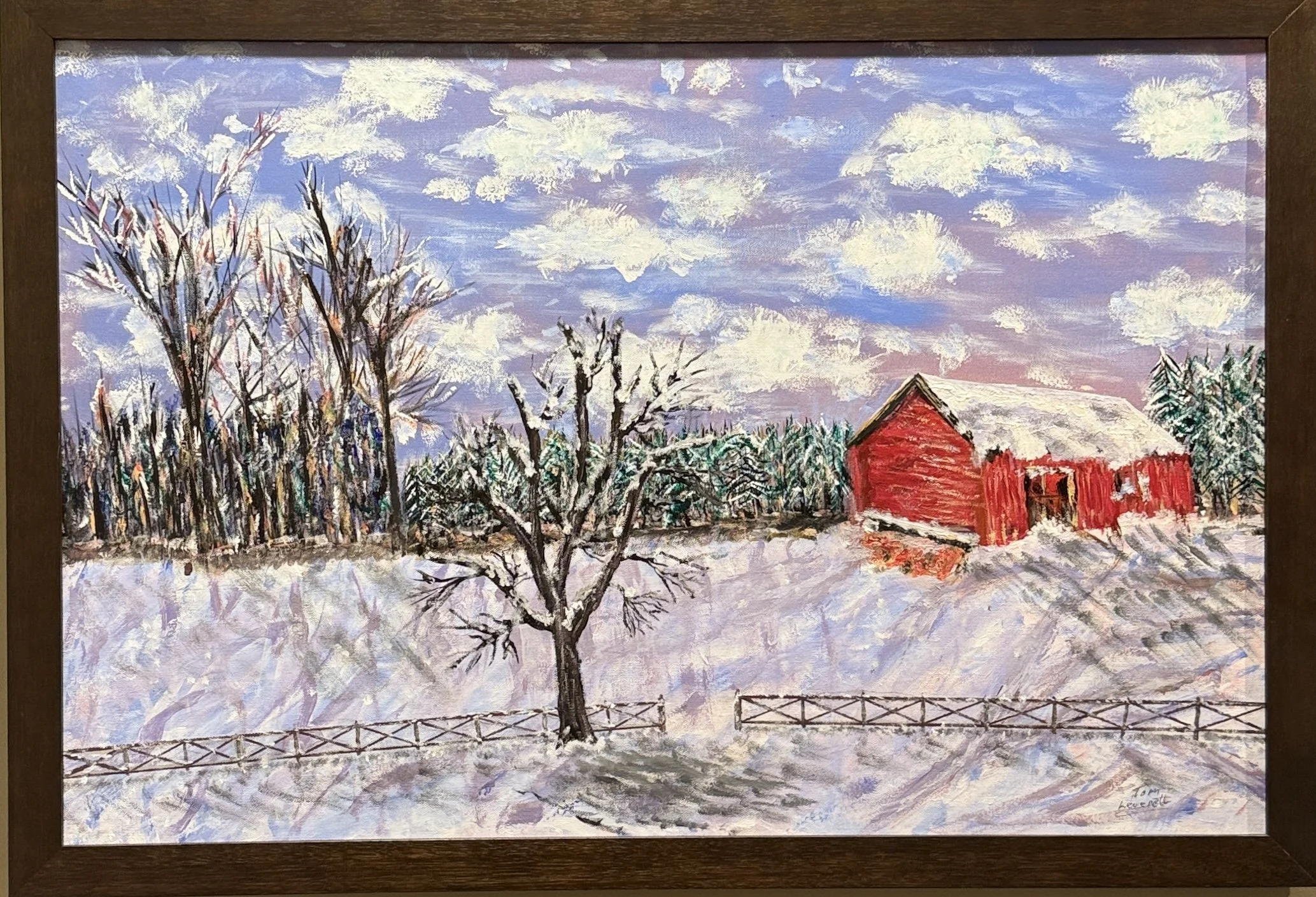 Winter time red barn scenery ! Acrylic on canvas 26-1/2” x 38-1/2” x 1-1/2”